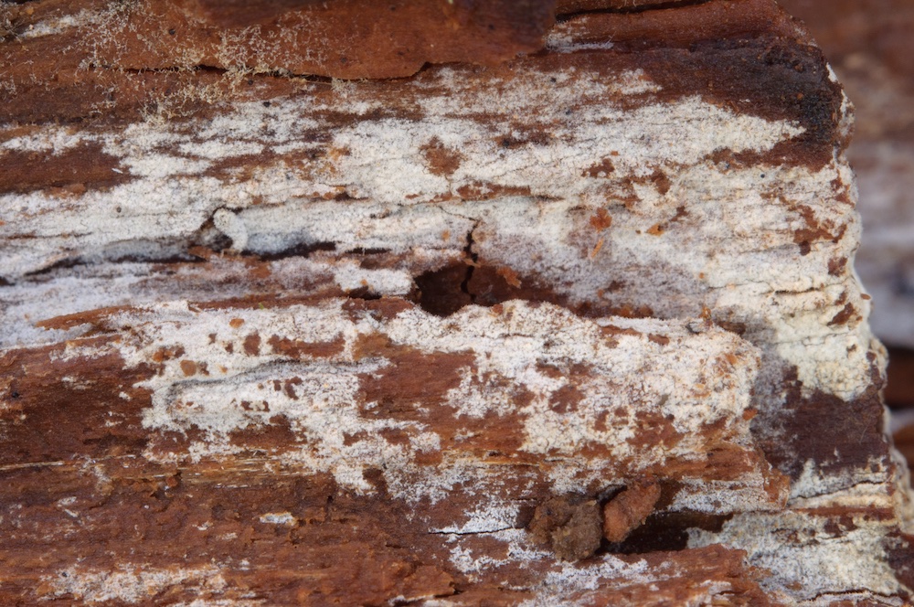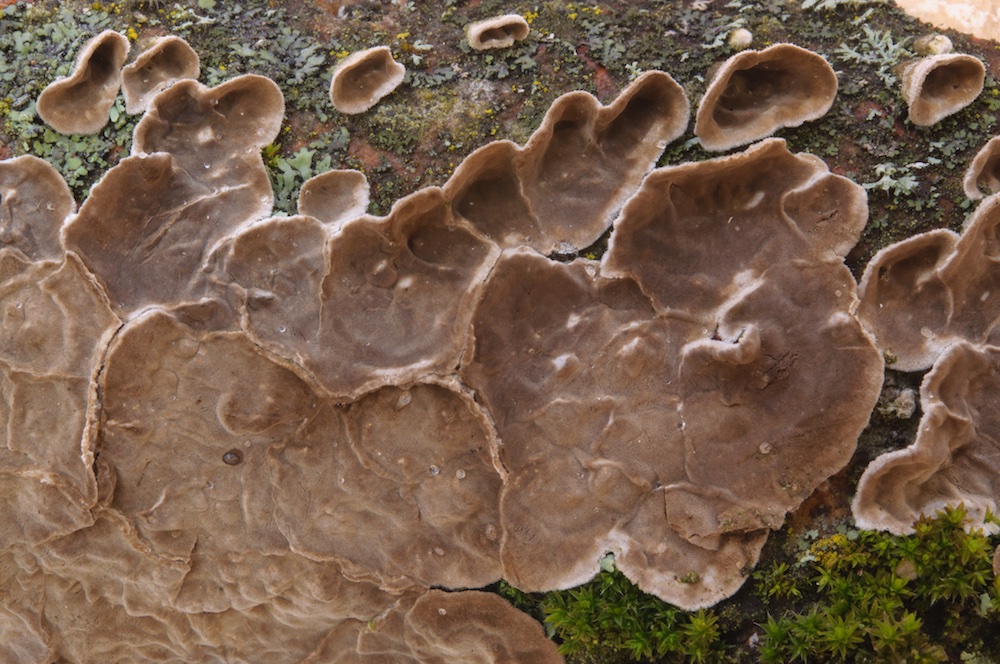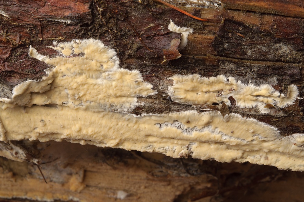 Antrodia serialis: Sehr häufig und sehr variabel, wie man hier sehen kann… Liegender Picea-Stamm. .