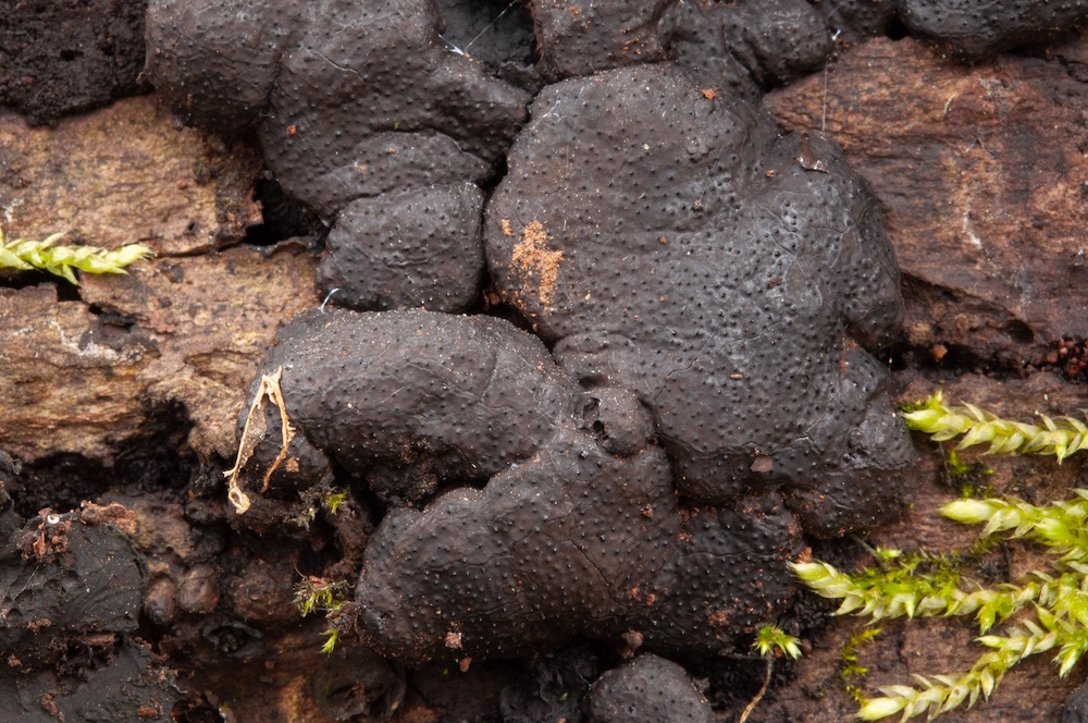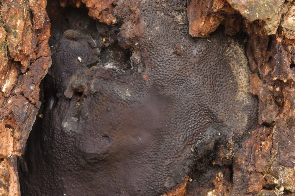 Camarops polysperma: Morsche Schwarzerlen-Stämme, so wie hier, sind eigentlich das bevorzugte Substrat, ich kannte sie bislang nur von einem Fagus-Stamm. .