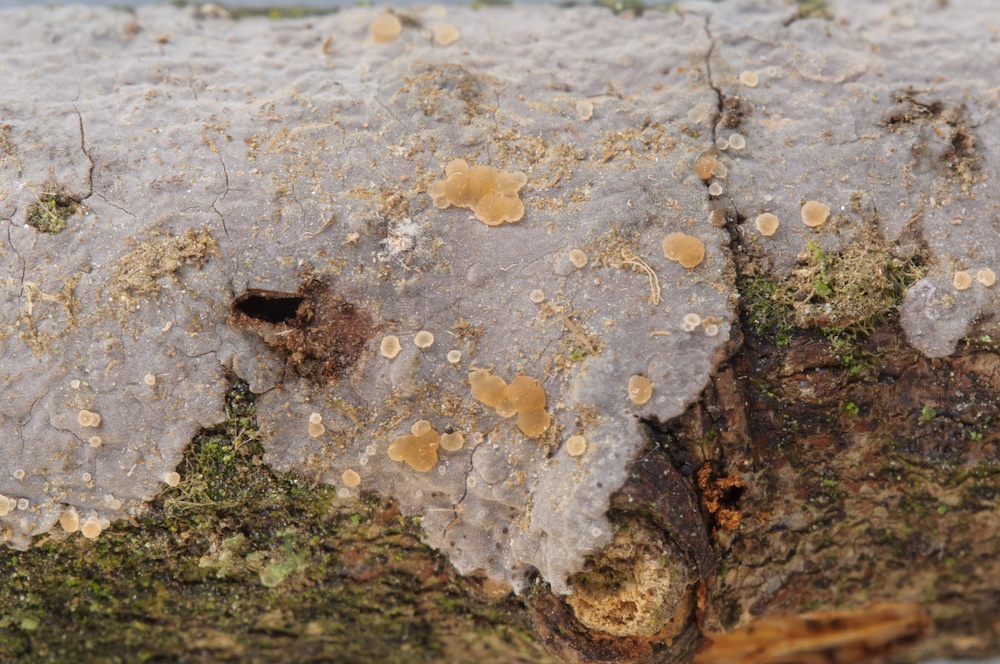 Tremella versicolor: Liegender Tilia-Ast, auf Peniophora sp.