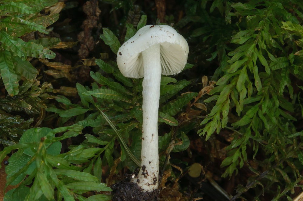 Inocybe cf. geophylla agg.: Bei Picea im feuchten Moos. Kompletter Albino – sogar die Sporen sind farblos!
