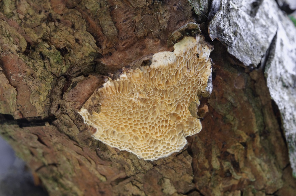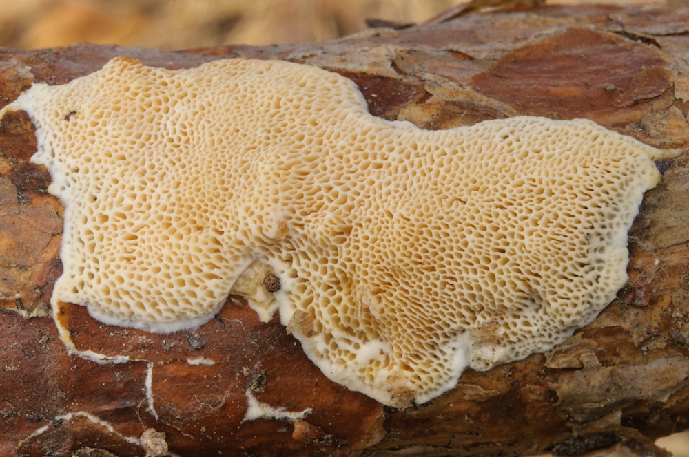 Diplomitoporus flavescens: Liegender Pinus-Ast. .