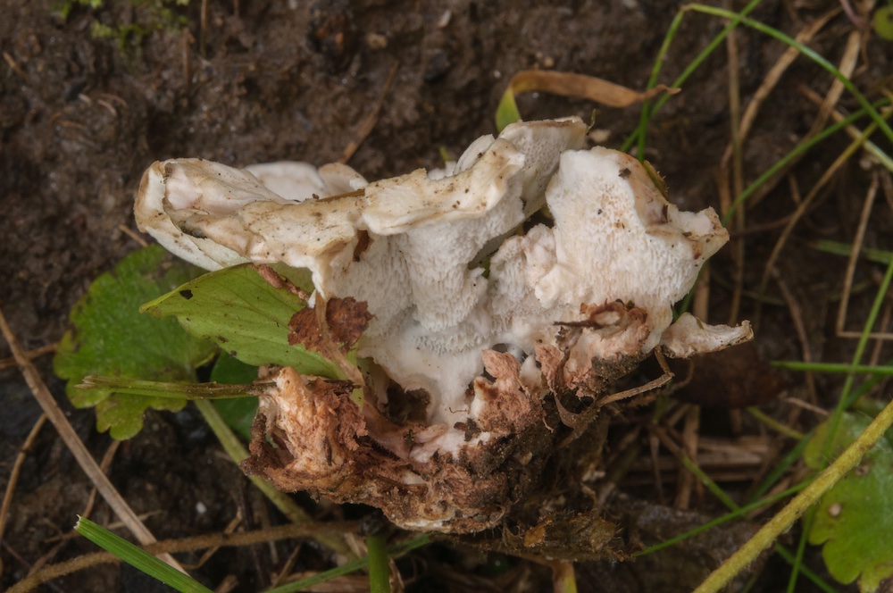 Postia floriformis: Vergrabenes Holz in Parkanlage. .