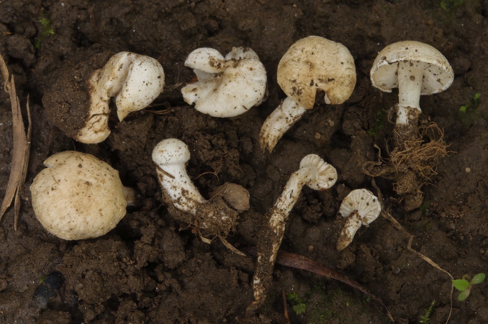Tricholomella constricta: Auf nackter Erde bei Tilia in einer Parkanlage.