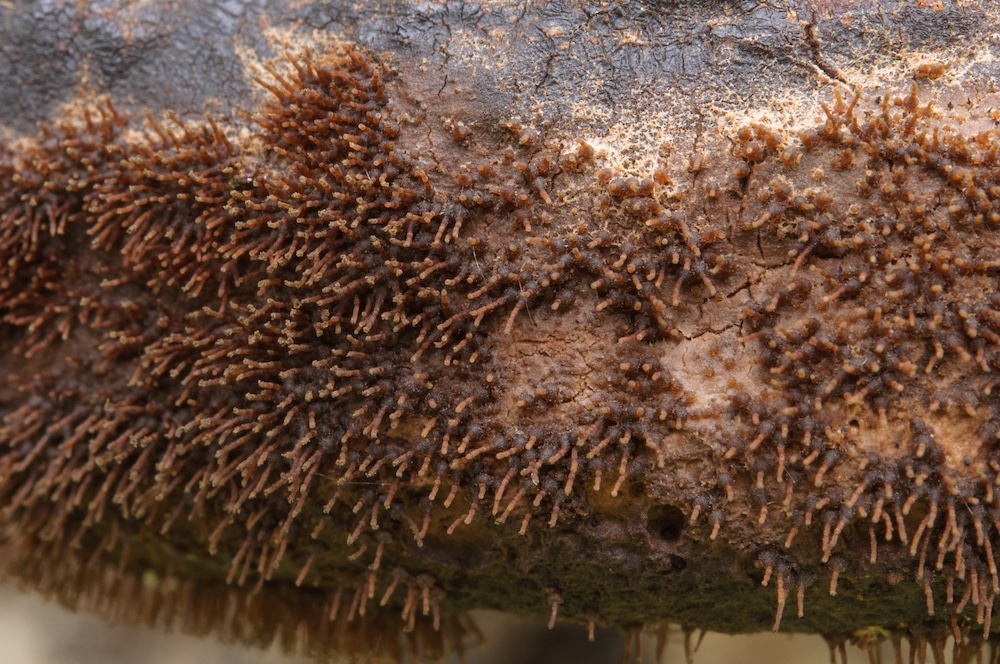 Ophiocordyceps variabilis: Auf Insektenlarve in einem morschen, liegenden Carpinus-Stamm. .