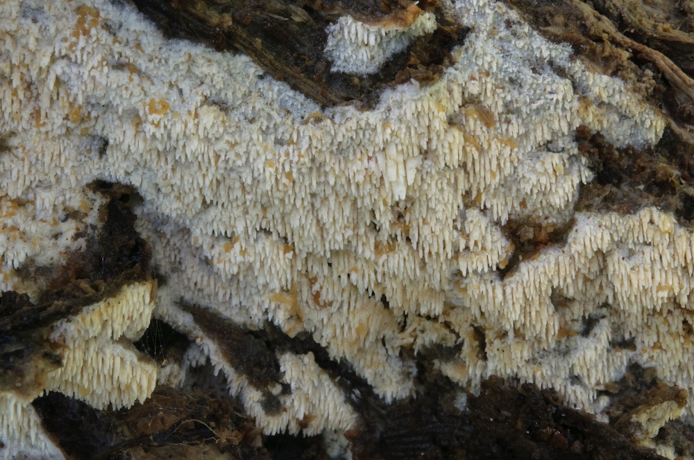 Byssocorticium albostramineus: Liegender Picea-Stamm. .
