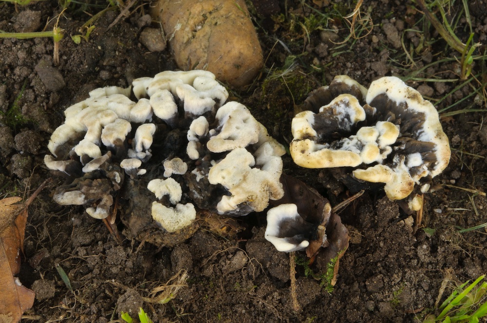 Thelephora atrocitrina: Im Mischwald auf Erdboden. Unterscheidet sich m. E. durch die breiten, ± gelb gefärbten Zuwachskanten schon von T. anthocephala, aber das letzte Wort ist in dieser Gruppe anscheinend noch nicht gesprochen. .