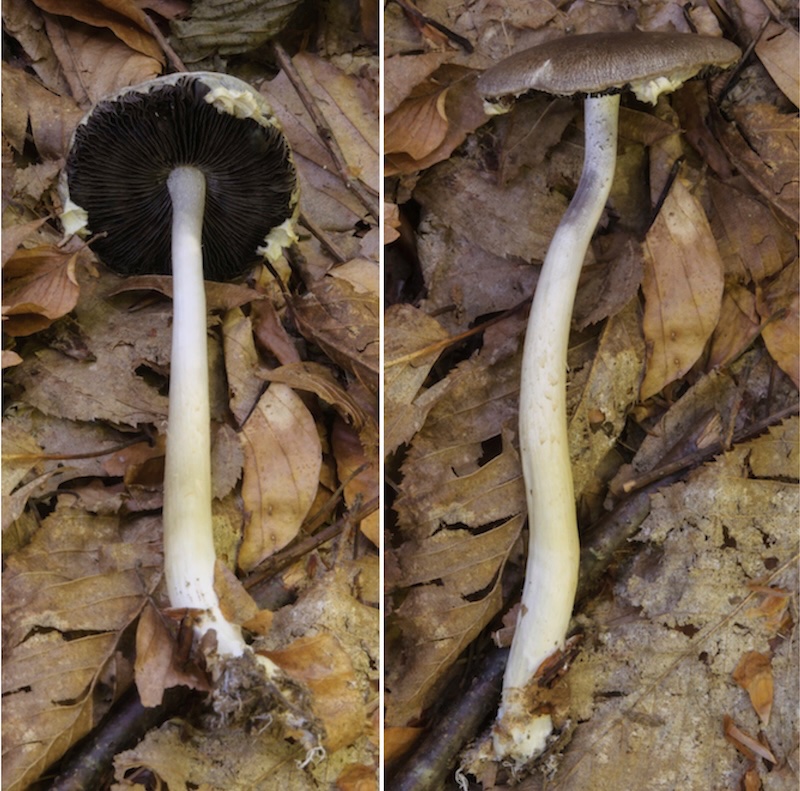 Stropharia rugosoannulata: Im Laubwald in der Streu. Ungewöhnlich schlankes Exemplar.