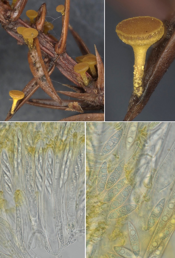Chloroscypha alutipes: Auf feucht liegenden Nadeln von Juniperus communis.