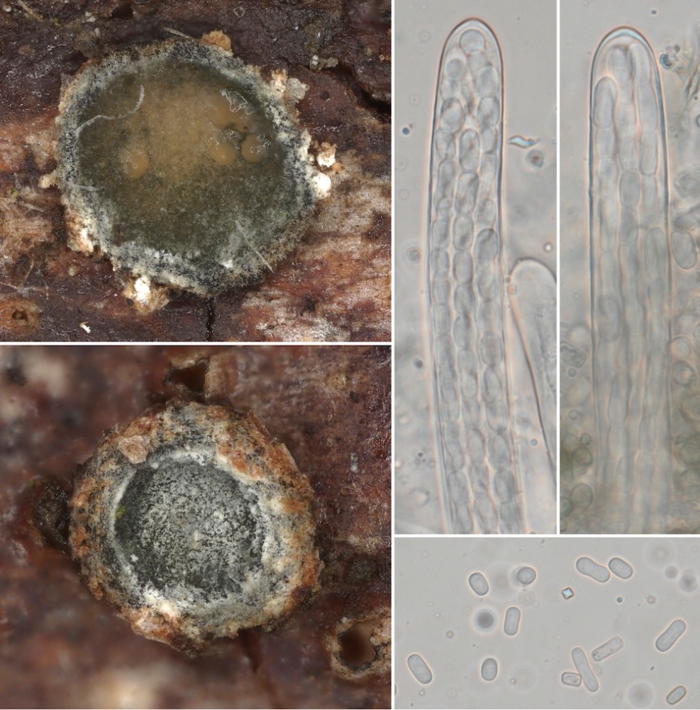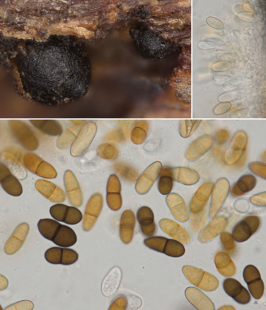 Schizoxylon compositum (Hauptfruchtform oben, Nebenfruchtform unten) .