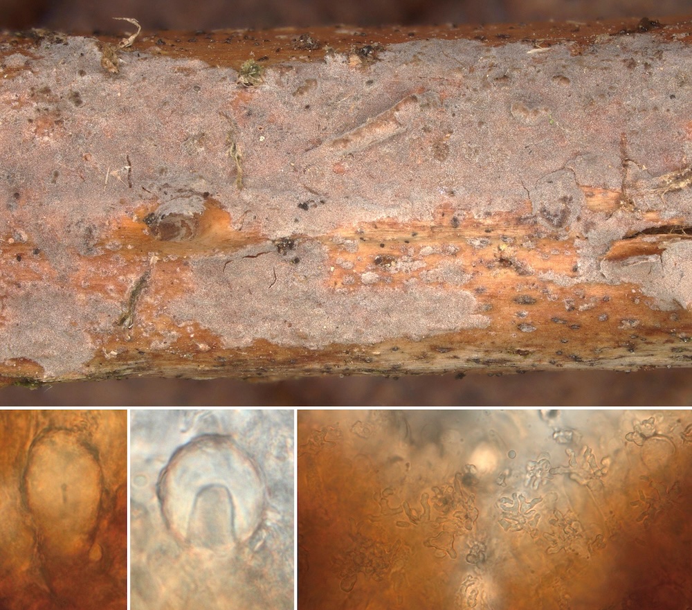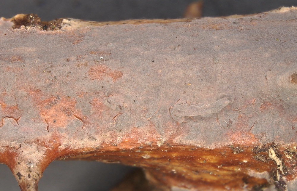Skvortzovia furfuracea (= Resinicium furfuraceum): Ein sehr ungewöhnliches Substrat für diese Art. .
