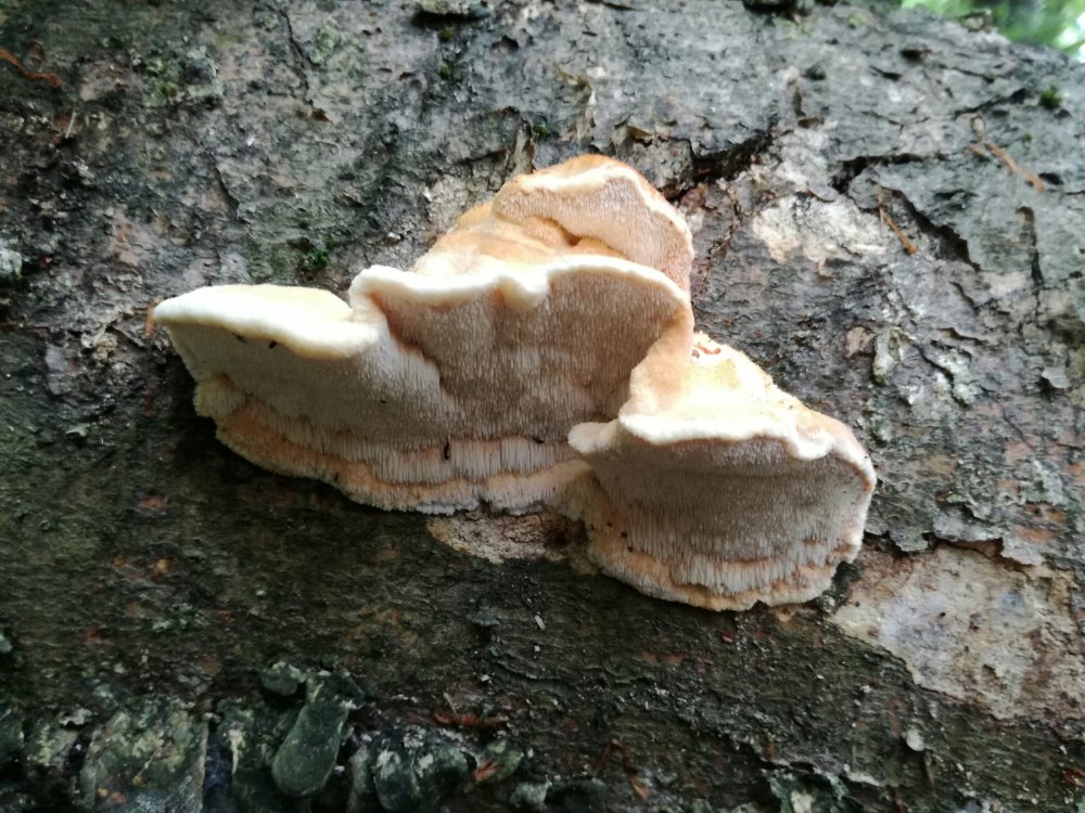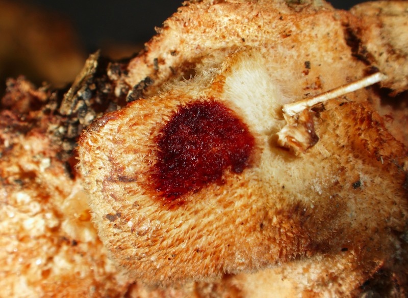 vor ein paar Tagen hat Uwe Kozina einen tollen Fund gemacht, den ich hier präsentieren möchte. Climacodon pulcherrimus ist leicht zu erkennen anhand der feinen Stacheln, der haarig-filzigen Oberseite, der rötlichen KOH-Reaktion und der großen "Doppelschnallen" an den Tramahyphen. Leider waren die Fruchtkörper schon ziemlich hinüber, weshalb sie untypisch aussehen. Hier gibt es aber eine schöne Präsentation dieser Art: https://www.mycocharentes.fr/pdf1/1624.pdf.