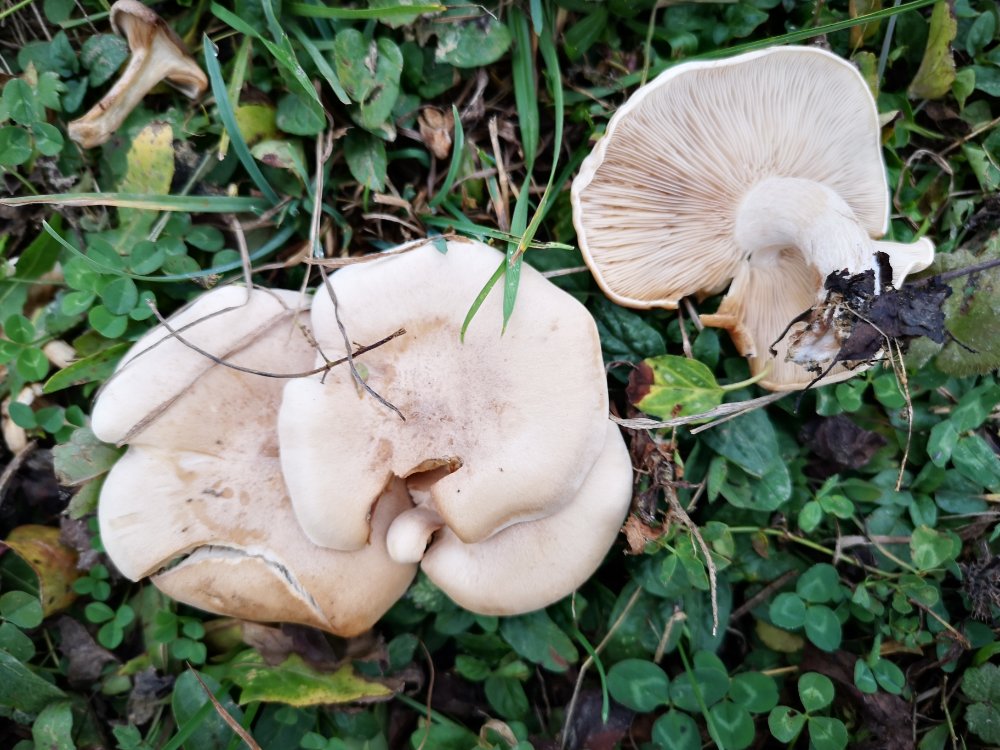 #1Eine Lepista im Grünland. Ist entweder L ricekii oder L. panaeolus. Der Grauton fehlt mir hier.