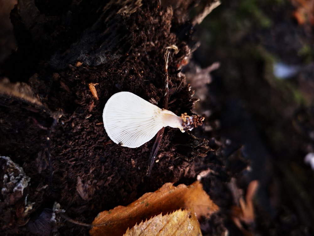 Diese Hohenbuehelia tritt hier öfters auf stark zersetztem Totholz, meist Buche, auf.