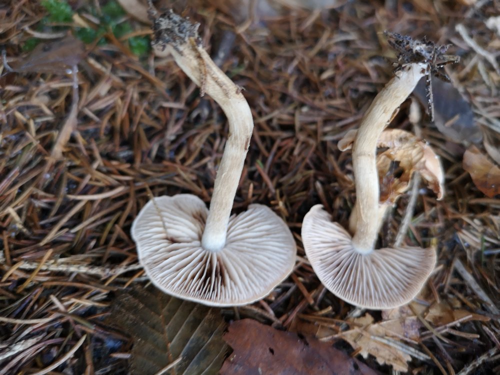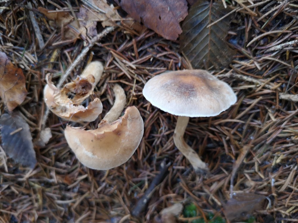Dieser unbekannte, wahrscheinlich Hebeloma oder Cortinarius wuchs neben Fichten.