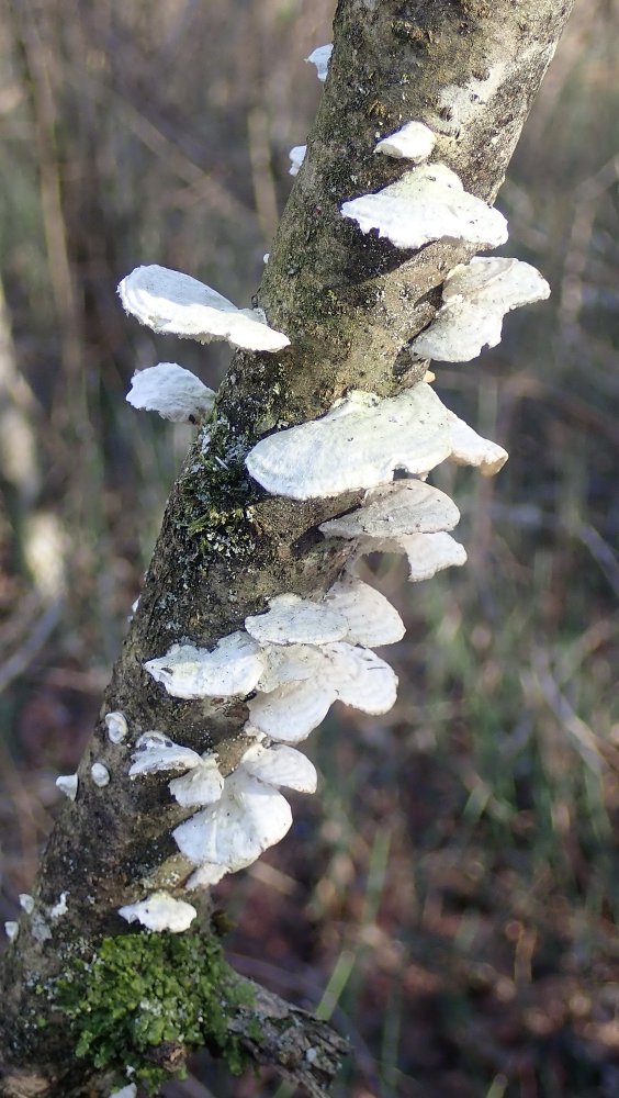 Trametes pubescens war da, wie immer von Maden zerfressen. Ich habe noch keine T.p. gefunden, die keinen Madenbefall hatte, auch junge nicht.