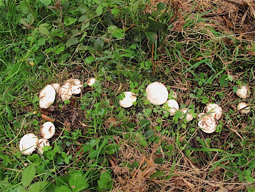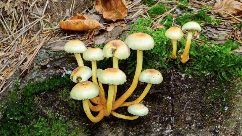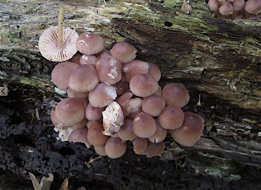 Diese Helmlinge wachsen im Moment zu Hunderten auf einigen alten Baumstämmen.