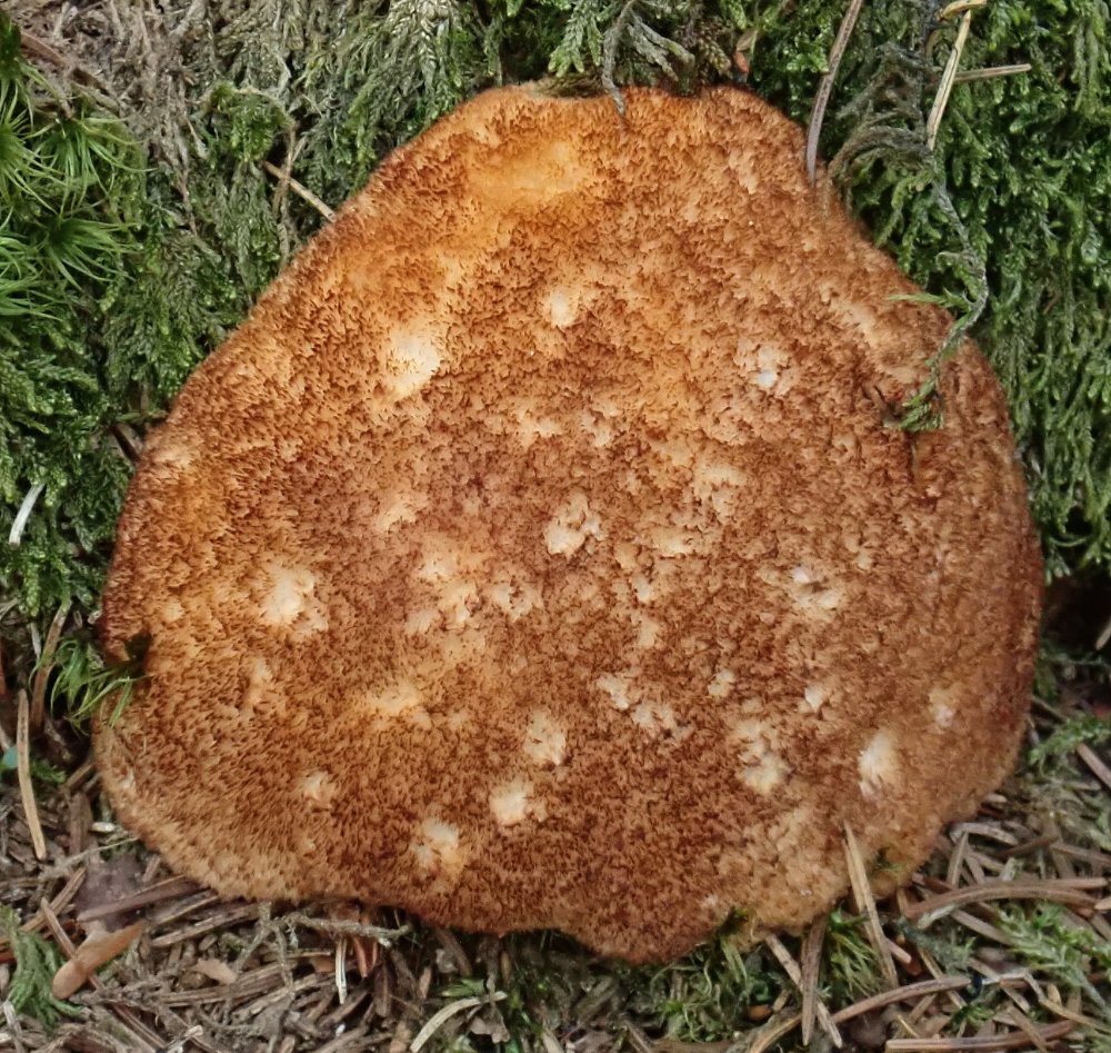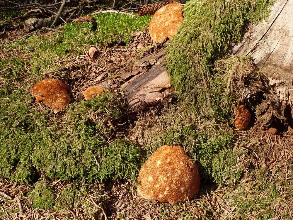 Die Bezeichnung "Weißer Polsterpilz" (Pychogaster albus) wird bei fortschreitendem Alter unrichtig, wie das Bild beweist. Diese aparte Erscheinung ist die Anamorphe vom resupinaten Porling Oligoporus ptychogaster, wobei die fertilen FK oft nicht ausgebildet werden.