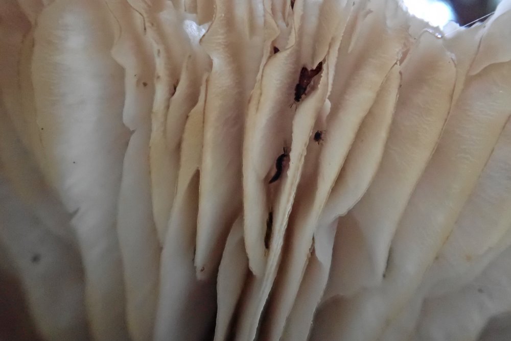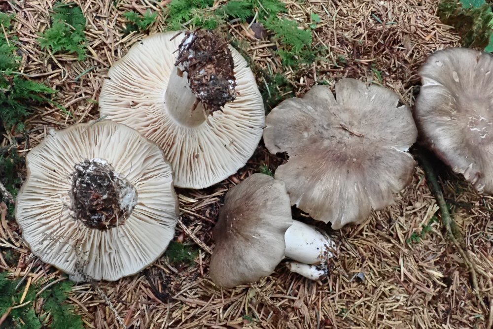 Gestern war ich im selben Gebiet unterwegs, wo ich im vergangenen Sommer die Megacollybia marginata gefunden hatte. Bei uns im Ländle ist das Pilzaufkommen immer noch viel spärlicher als in Ostösterreich, jedoch hatte es u. a. einige Breitblatt-Rüblinge. Natürlich schaue ich jetzt immer genauer hin, wenn ich solche sehe. Und gestern war das Ergebnis mehr als verblüffend: Bei meinem Rundgang traf ich auf 8 Kollektionen wie folgt: