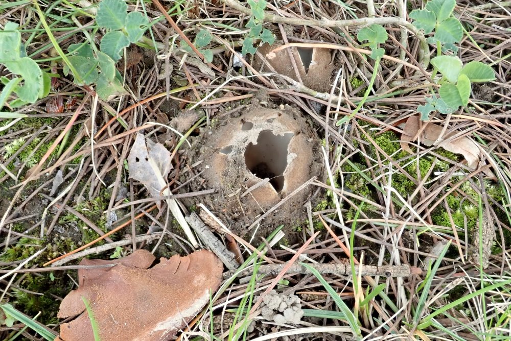 Bei mir in der Nähe steht in einem Privatgarten eine große Zeder (ich vermute Libanon-Zeder). Dort hatte ich vor vier Jahren den Zedern-Sandborstling das erste Mal entdeckt. Im vergangenen Jahr war der Pilz am 10. April wieder da und aktuell nun zum dritten Mal. Es scheint eine bei uns nicht häufig vorkommende Art zu sein, in der Datenbank sind gerade einmal zwei Eintragungen. Leider war bei meiner Entdeckung 2020 bereits der Rasenmäher drüber gefahren. Deshalb meine Fotos vom letzten Jahr.