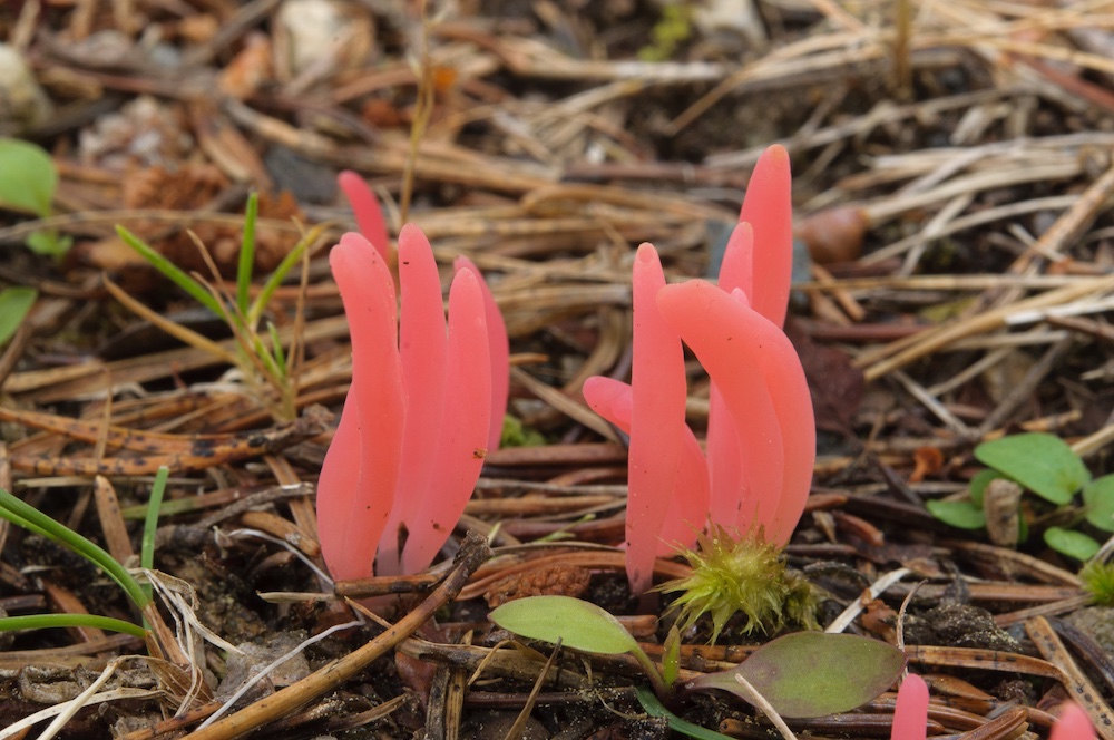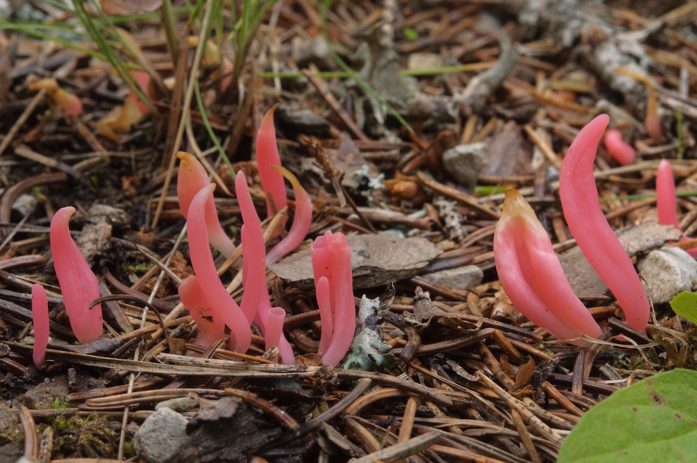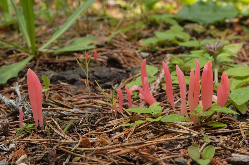 Anna beobachtet die Clavaria rosea an diesem Standort schon seit ein paar Jahren. Sie wächst dort am Rand einer Forststraße hauptsächlich unter Fichten und Kiefern. Leider wurde die Straße vor kurzem hergerichtet und verbreitert aber zumindest an einer Seite konnten sich die Keulchen bislang zum Glück noch halten. Der einzige andere Fund, den ich jemals gesehen habe, stammt von einem Skipisten-Bereich am Stoderzinken – ist aber schon lange her (2008, leg. D. Baloch, siehe Ö-Datenbank).