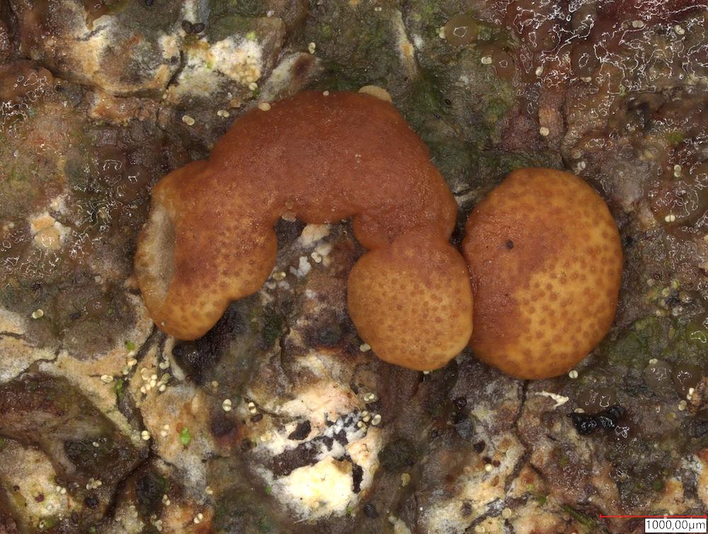 Gerade der Stiel sollte bei H. pithyophila doch etwas dunkler und nicht nur weißlich gefärbt sein.This species resembles H. crispa in size and stature; however, the hymenium in fresh ascocarps is light brown, drying caramel brown and the receptacle and stipe are whitish.