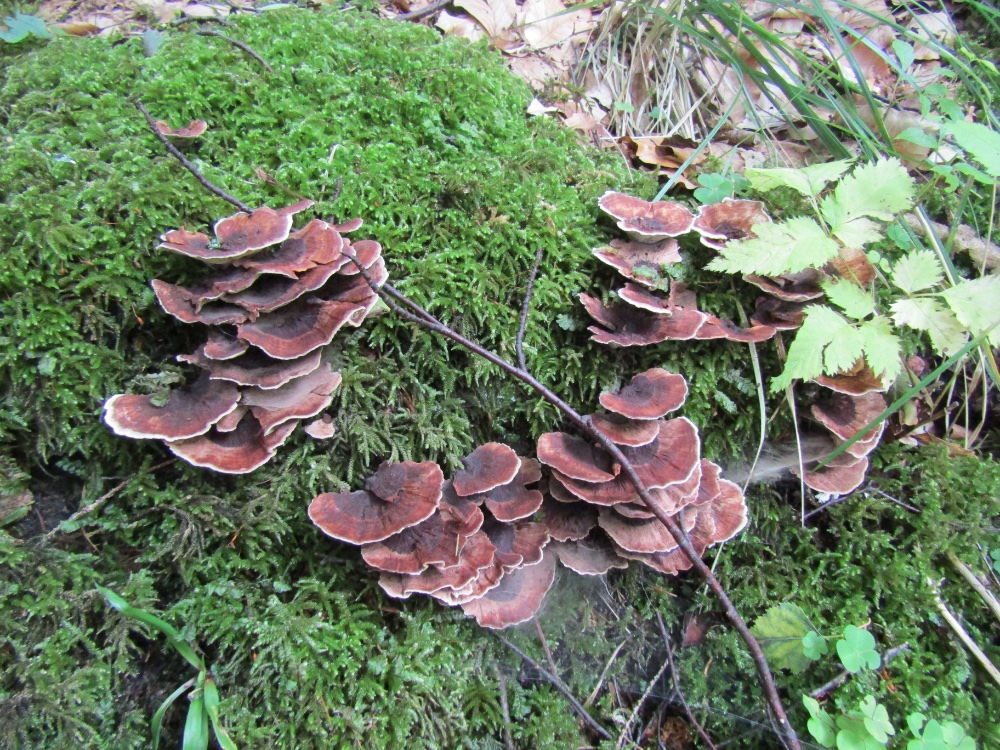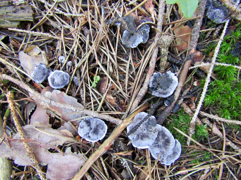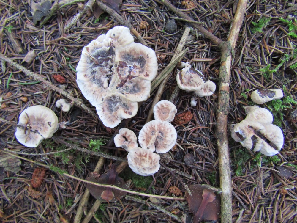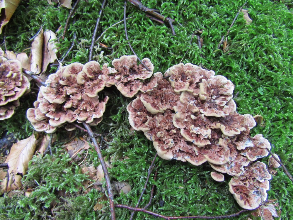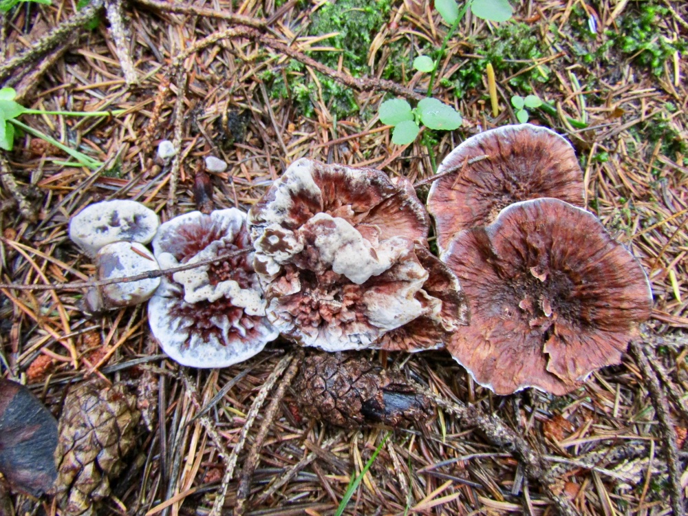 An einer Stelle habe ich heute drei Arten gesehen, die durcheinandergewachsen sind. Es lässt sich dann kaum mehr sagen, welchen Kollektionen die einzelnen Pilze zuzuordnen sind, vor allem wenn sie unterschiedlich alt sind. Dies betrifft vor allem die Abgrenzung der verschiedenen Hydnellum-Arten. Wer weiß was sich da bzgl. der Artabgrenzung in Zukunft noch alles tun wird.......