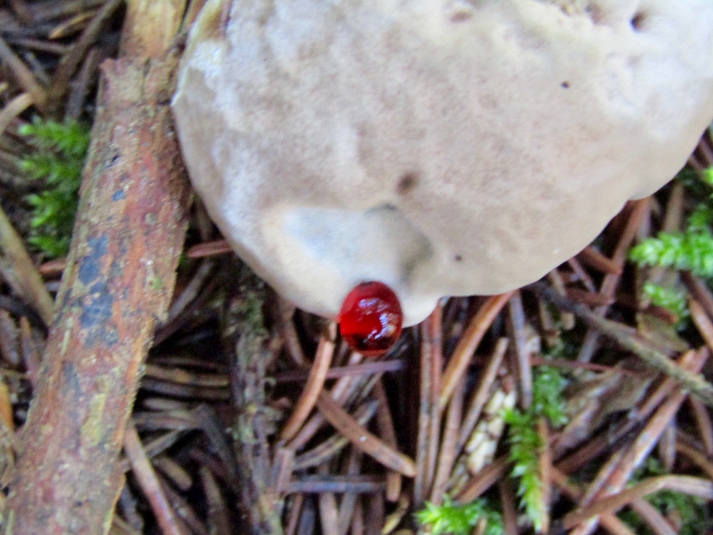 die roten Gutationstropfen scheinen eher selten aufzutreten, bisher habe ich die nur einmal beobachten können, an Hydnellum peckii,