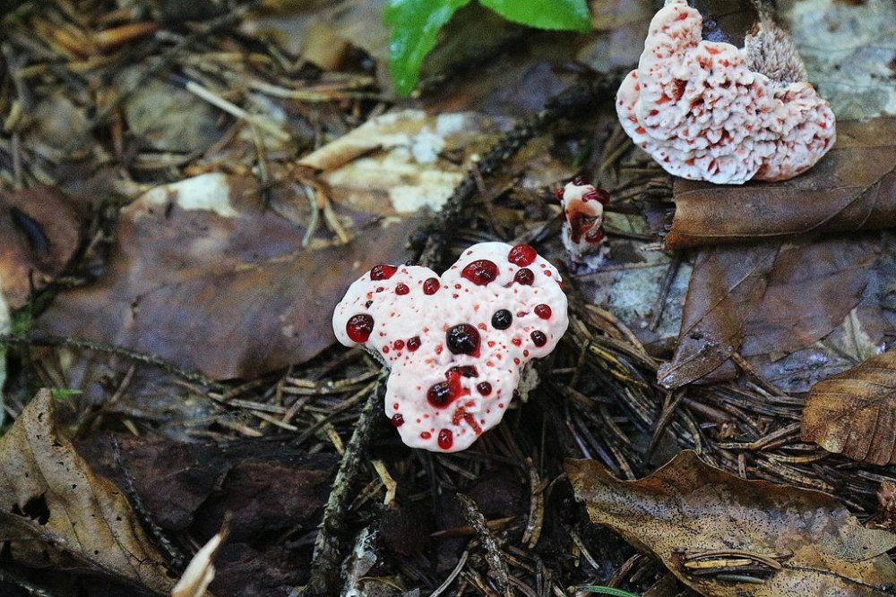In der Früh, wenn es noch feucht ist, zeigt Hydnellum ferrugineum noch die typischen Blutstropfen. Diese verschwinden aber tagsüber, wenn es abtrocknet.