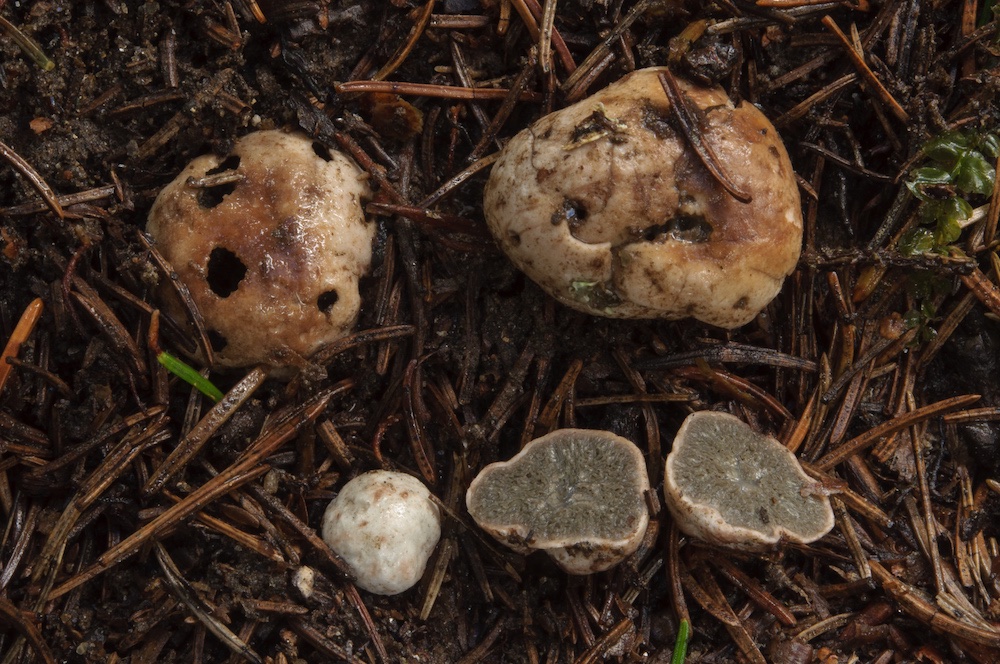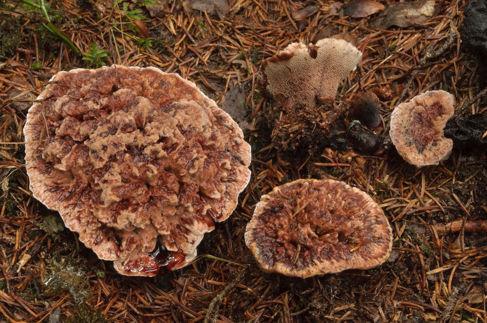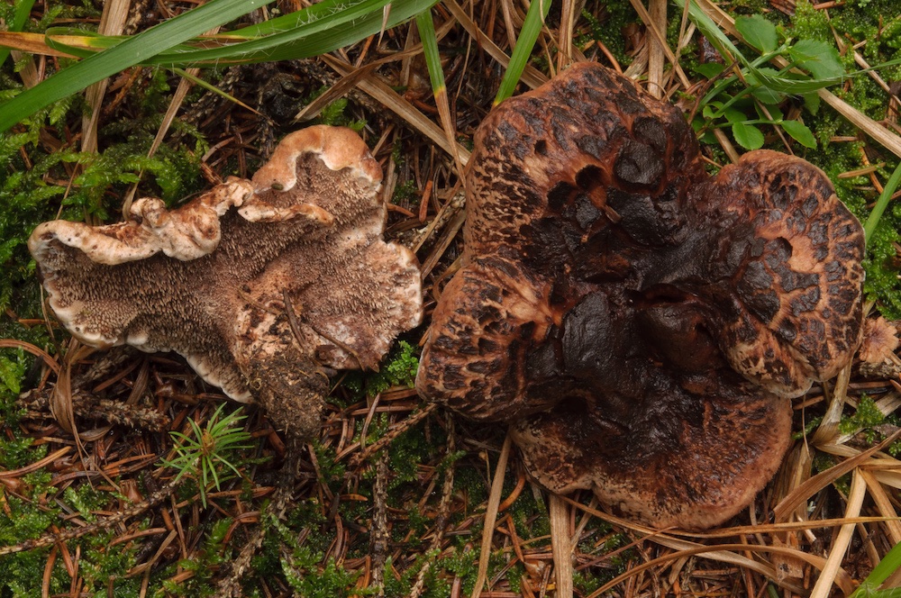 Bei deiner dritten Aufnahme von Hydnellum scrobiculatum hätte ich als Laie H. concrescens als Arbeitstitel gewählt und mir einen Wolf mikroskopiert. Damit hätte ich schon ein passendes Kamingesprächthema für's bevorstehende Treffen, sic!