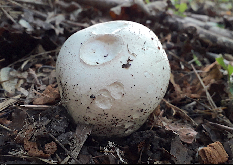 Junge Exemplare von Calvatia gigantea, gefunden in einem Mischwald (Kiefer, Eiche, Ahorn, Esche).