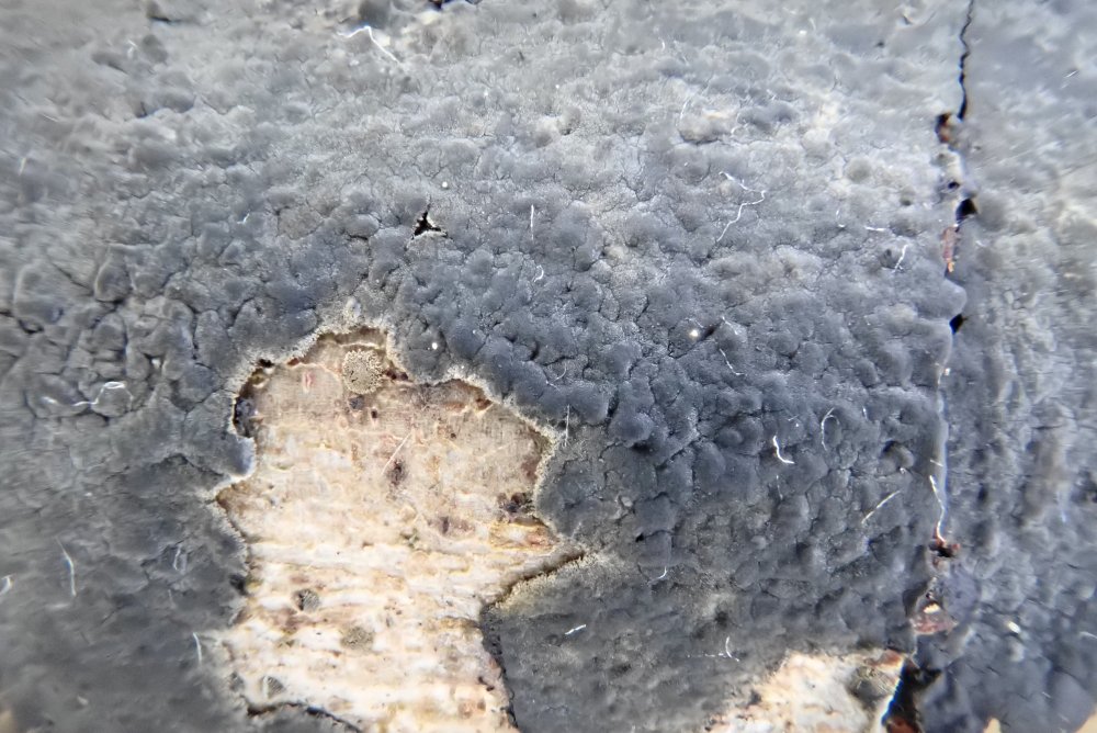Bei dieser Runde bin ich u. a. auf Tulasnella violea an einem entrindeten, liegenden Pinus-Stamm gestoßen. Bisher glaubte ich immer, diese kommt nur an Laubholz und hatte sicherheitshalber mikroskopiert.