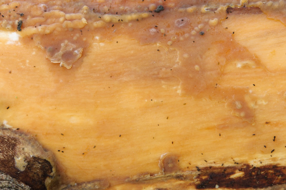 Phlebia rufa: Liegender Fraxinus-Ast.