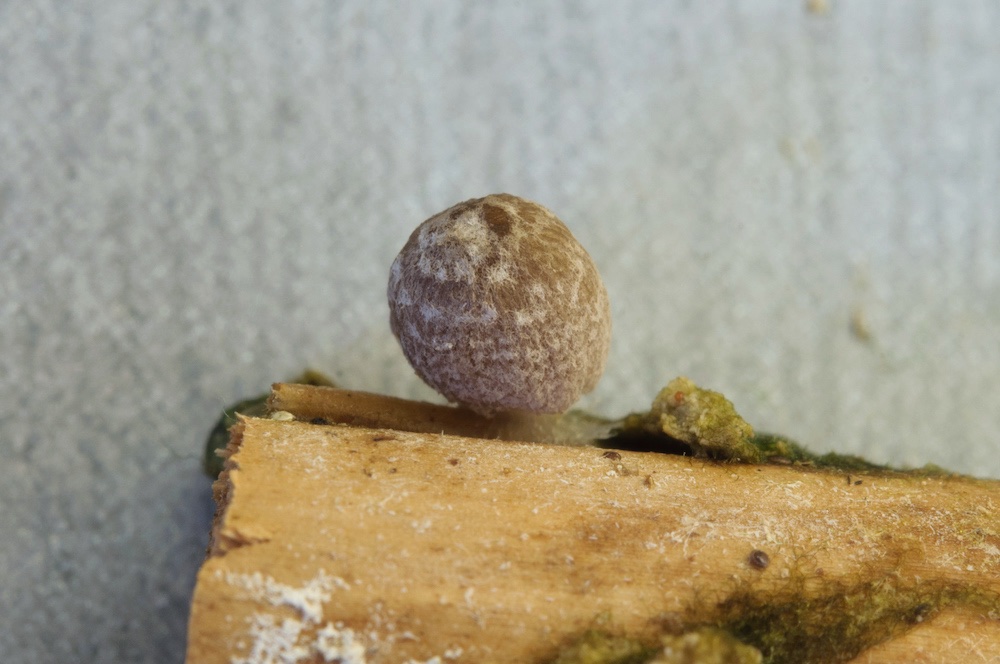 Botryobasidium botryoideum: Eine eher seltene Art mit kleinen, rundlichen, fein rauen Sporen (neben den typischen Gattungsmerkmalen). Liegender Laubholz-Ast.