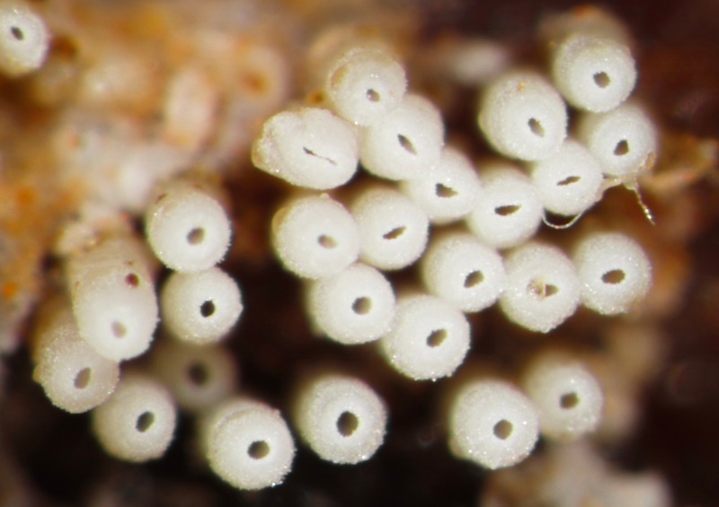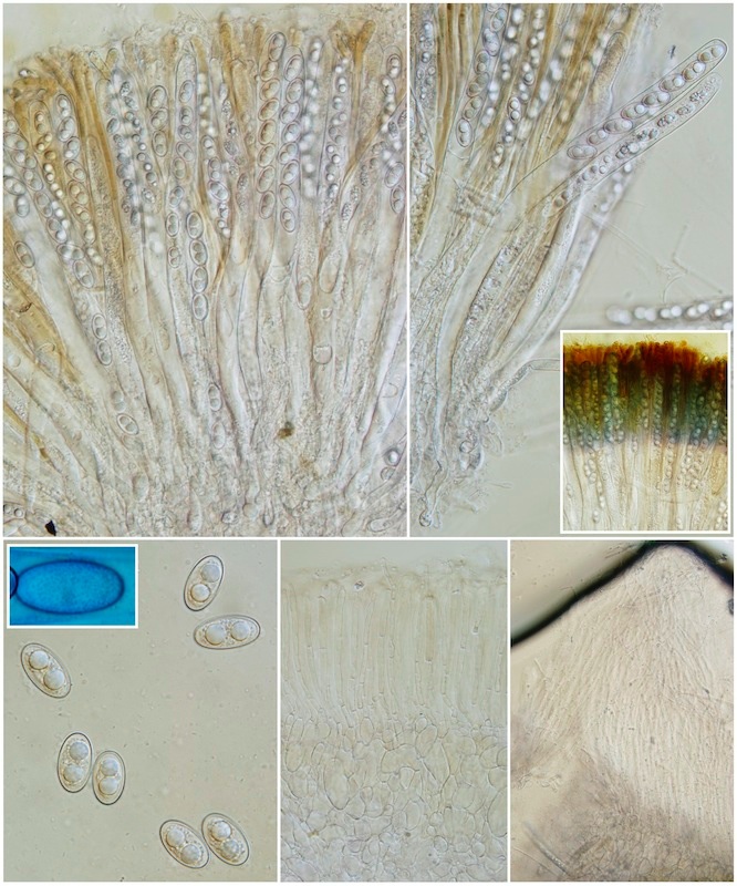 Auf morschem Laubholz fanden wir eine einzelne Pachyella, die schwierig einzuordnen ist. Eine gelbliche Flüssigkeit konnte ich nicht beobachten, die Sporen sind rau, die Haarhyphen-Schicht ist mehrere 100 µm dick – so kommt man eigentlich zu P. violaceonigra aber die Makroskopie wäre dafür etwas untypisch. Leider ist die Gruppe um P. violaceonigra/pseudosuccosa/aquatilis ziemlich schwierig, weshalb ich den Fund nun mal als Pachyella cf. violaceonigra abgelegt habe.