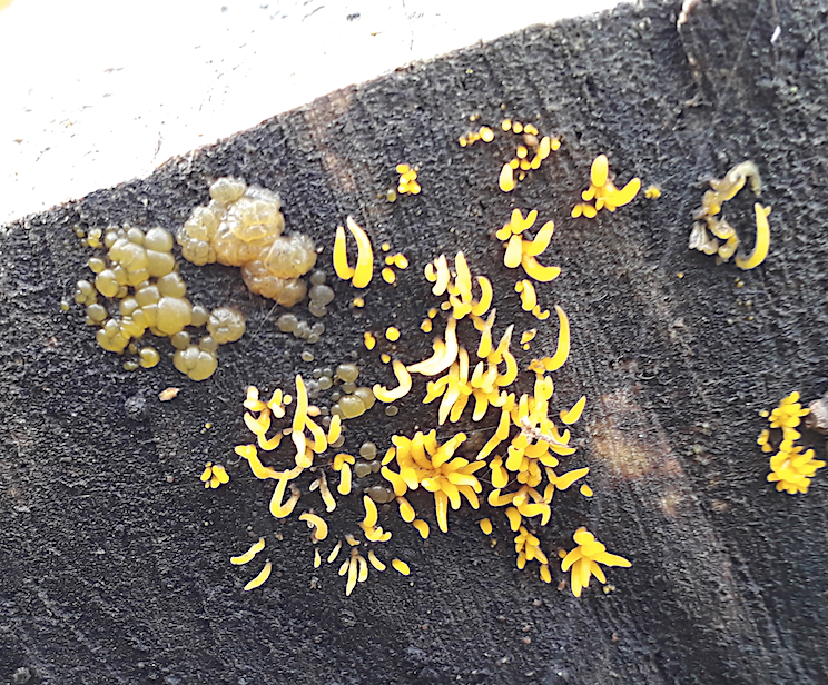 #10: Was war denn das für ein Substrat? Je nachdem kämen Calocera furcata oder C. cornea in Frage (+ Dacrymyces sp.).