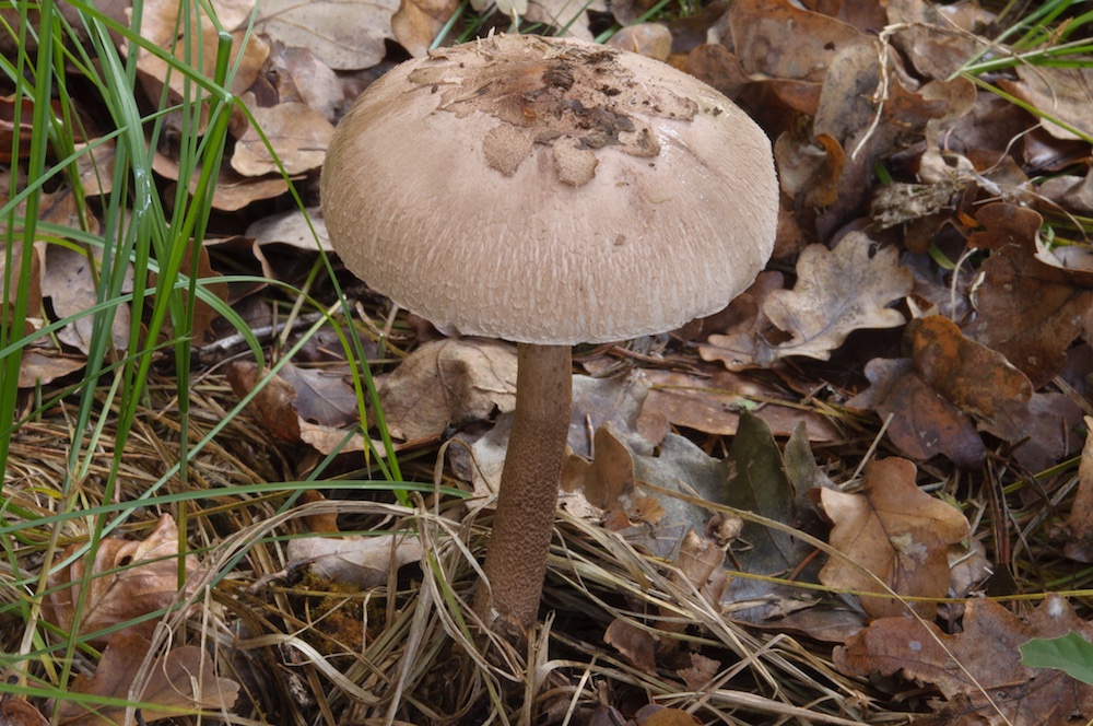 Macrolepiota rhodosperma: Mitten auf einem zugewachsenen Forstweg.