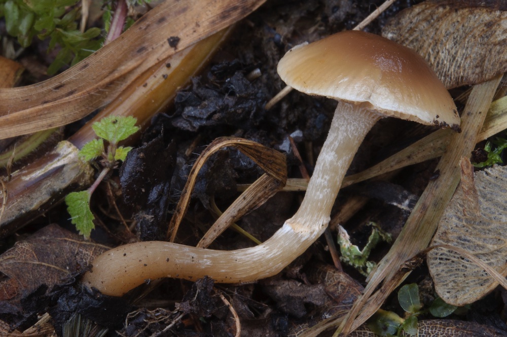 Mycena leptocephala: Unter Pinus, am Rand eines Trockenrasens.