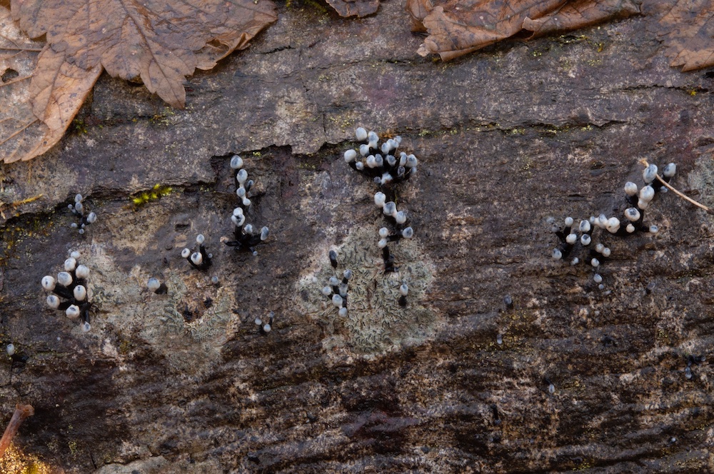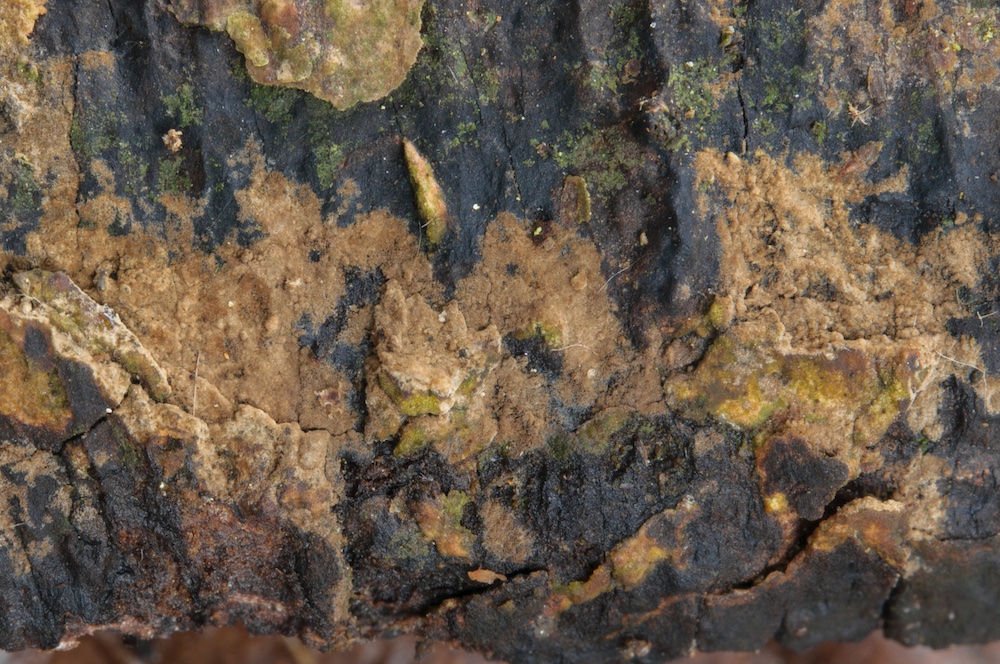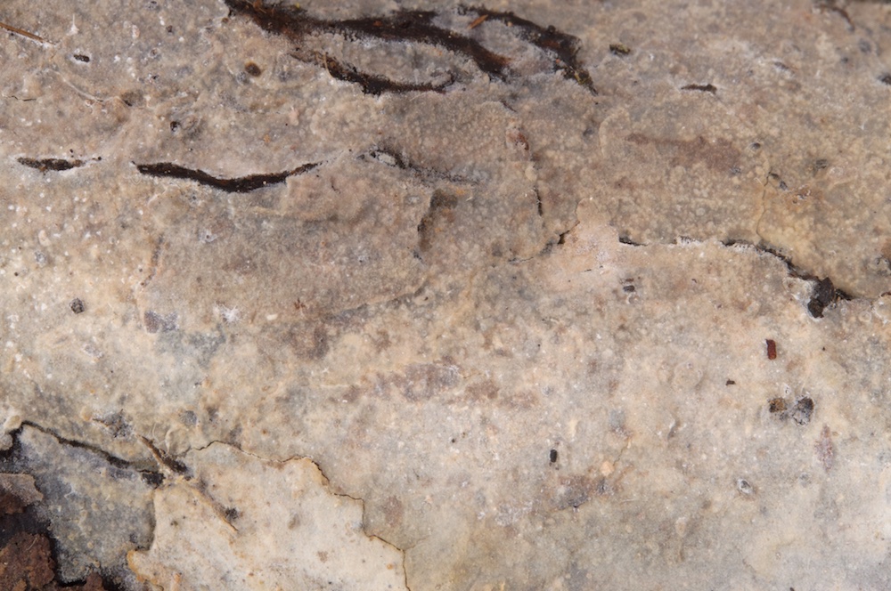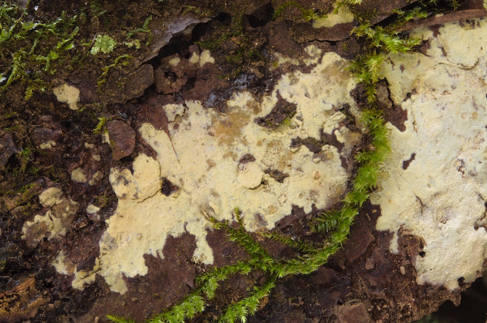 Holwaya mucida: Liegender Tilia-Stamm. Interessanterweise wurde der befallene Tilia-Stamm von zwei dickeren Salix-Stämmen umgerissen, auf welchen die Holwaya ebenfalls wuchs. Mir war neu, dass sie auch auf anderen Substraten als Tilia vorkommen kann – von Irmgard und Hermann gibt es bereits einen Nachweis auf Quercus in der Myk. DB. .