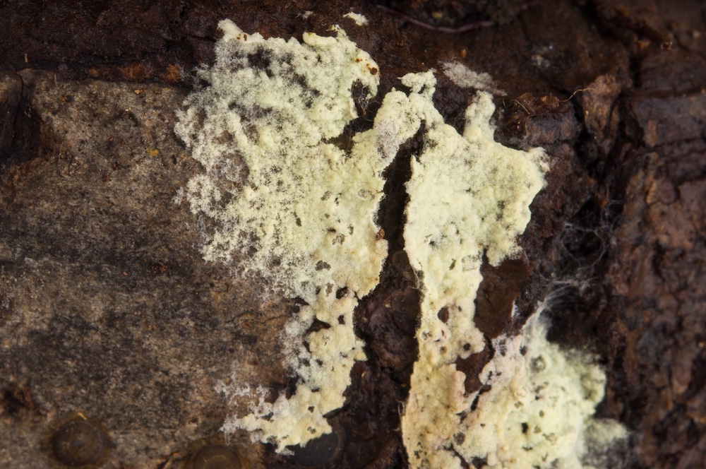 Granulobasidium vellereum: Quercus-Stamm, Unterseite. Erst wenige Nachweise in Ö.