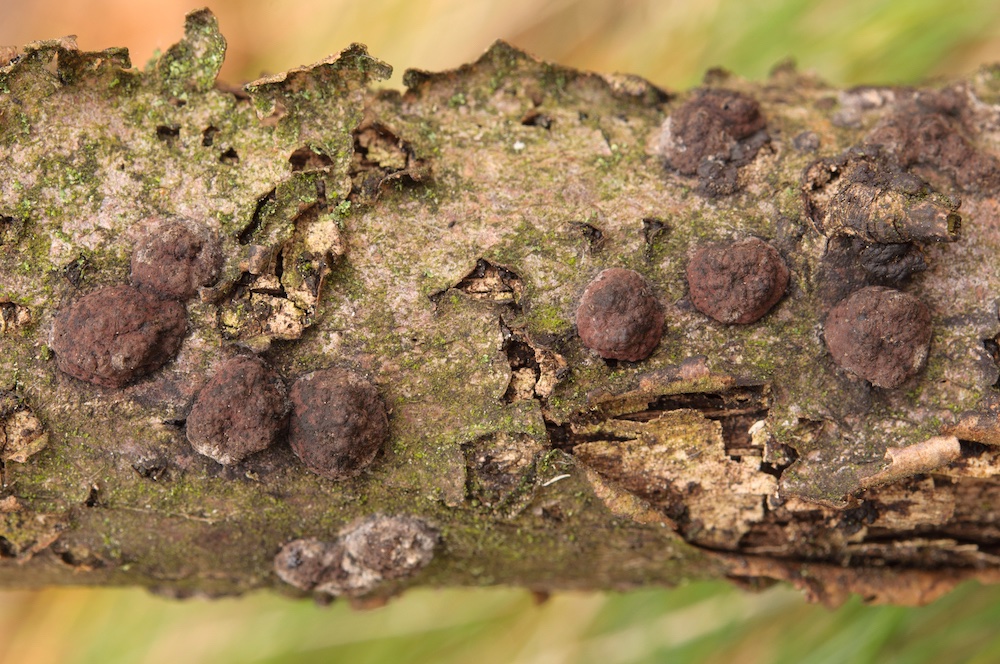 Hypoxylon eurasiaticum: Carpinus-Ast. Die Hypoxylon-fuscum-Gruppe ist nun durch zwei neu beschriebene europäische Arten noch komplexer geworden. Wer nachlesen möchte: Link. .