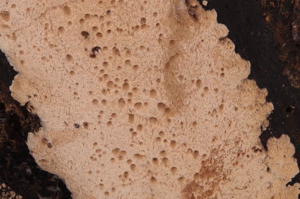 Oxyporus obducens: Quercus-Stamm, Unterseite. .