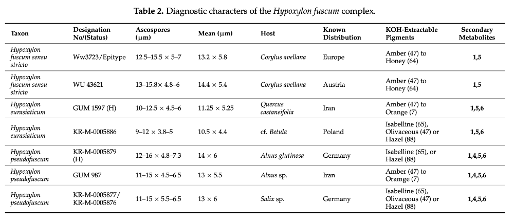 Leider wurden in der Arbeit über den H.-fuscum-Komplex keine Kollektionen auf Carpinus einbezogen, obwohl H. fuscum s. l. auf diesem Substrat ja sehr häufig ist. Die folgende Tabelle aus dieser Arbeit fasst die bekannten Informationen zusammen: