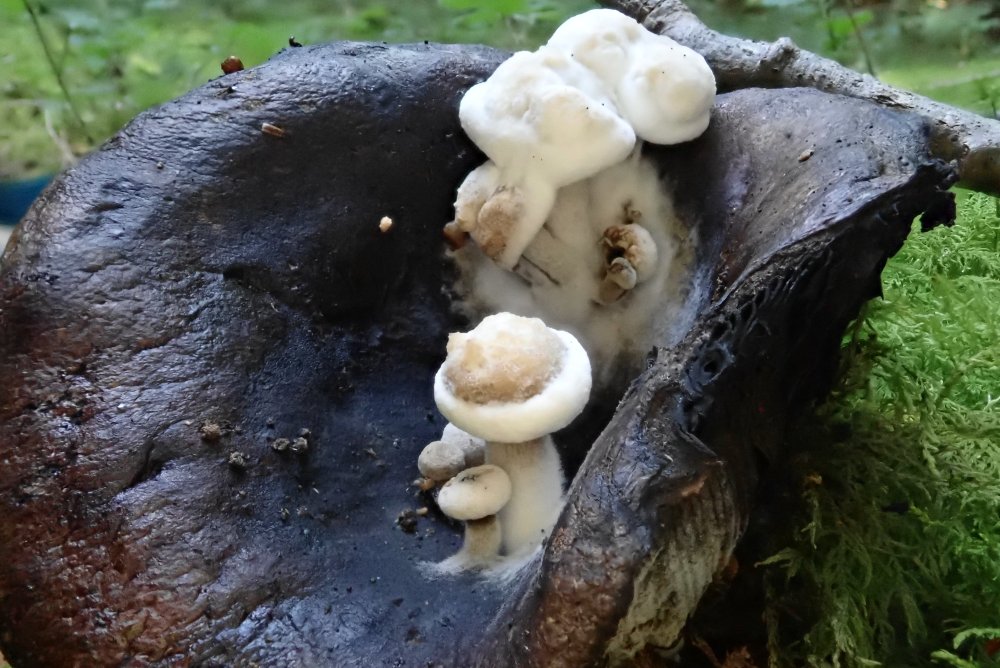 Asterophora lycoperdoides - fruktifiziert auf alten Täublingen oder Milchlingen - nach meiner Erfahrung sehr gerne auf Russula nigricans -