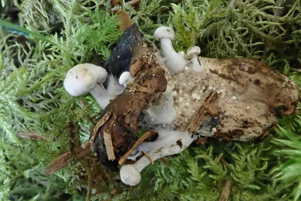 Lyophyllum semitale - war im Feld noch graubraun und daheim beim bearbeiten dann komplett ausgeblasst (hygrophan) wie am Foto zu sehen; kann nur mikroskopisch bestimmt werden, gefunden am Waldrand bei mir ganz in der Nähe