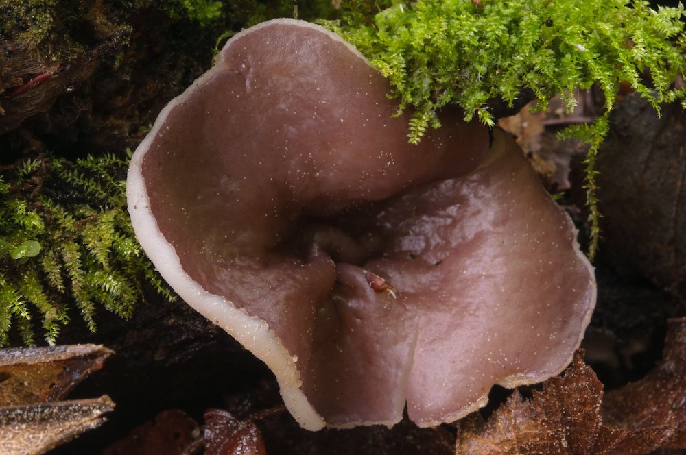 Sistotremella perpusilla: Liegender Nadelholz-Ast. Ein interessanter Pilz mit kleinen, dickwandigen Sporen. .