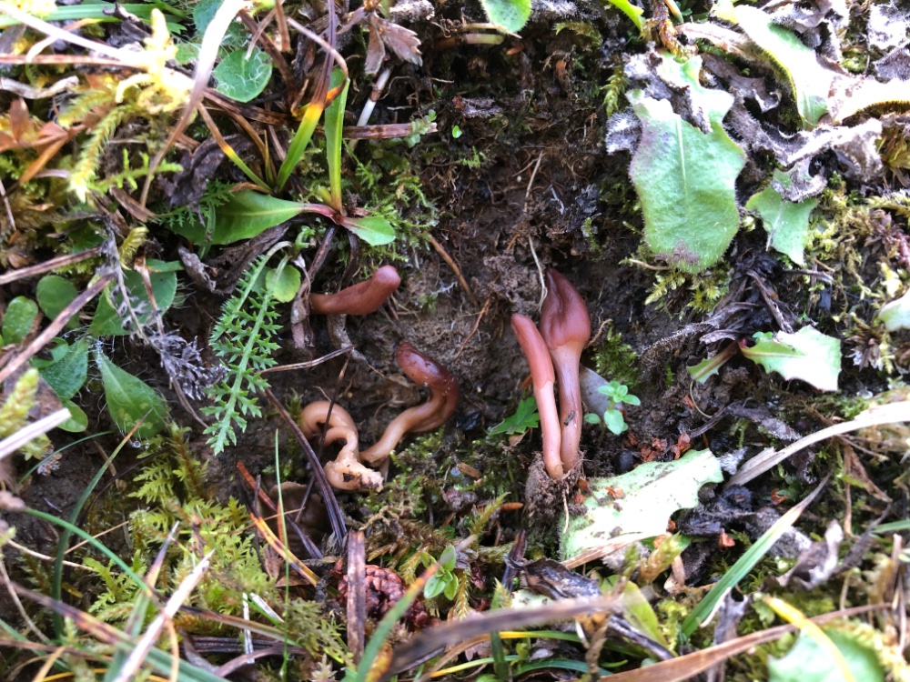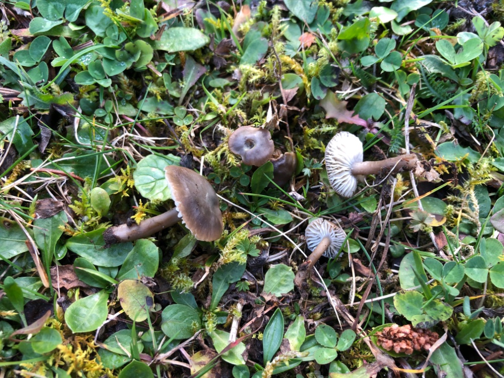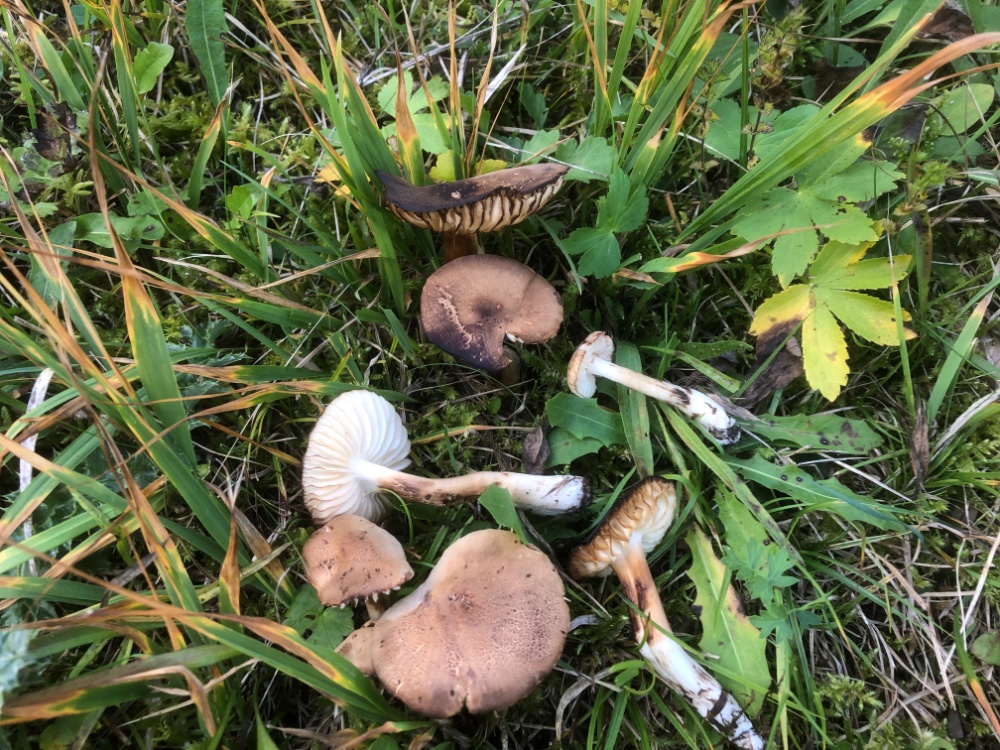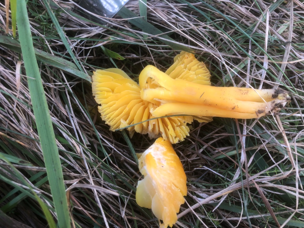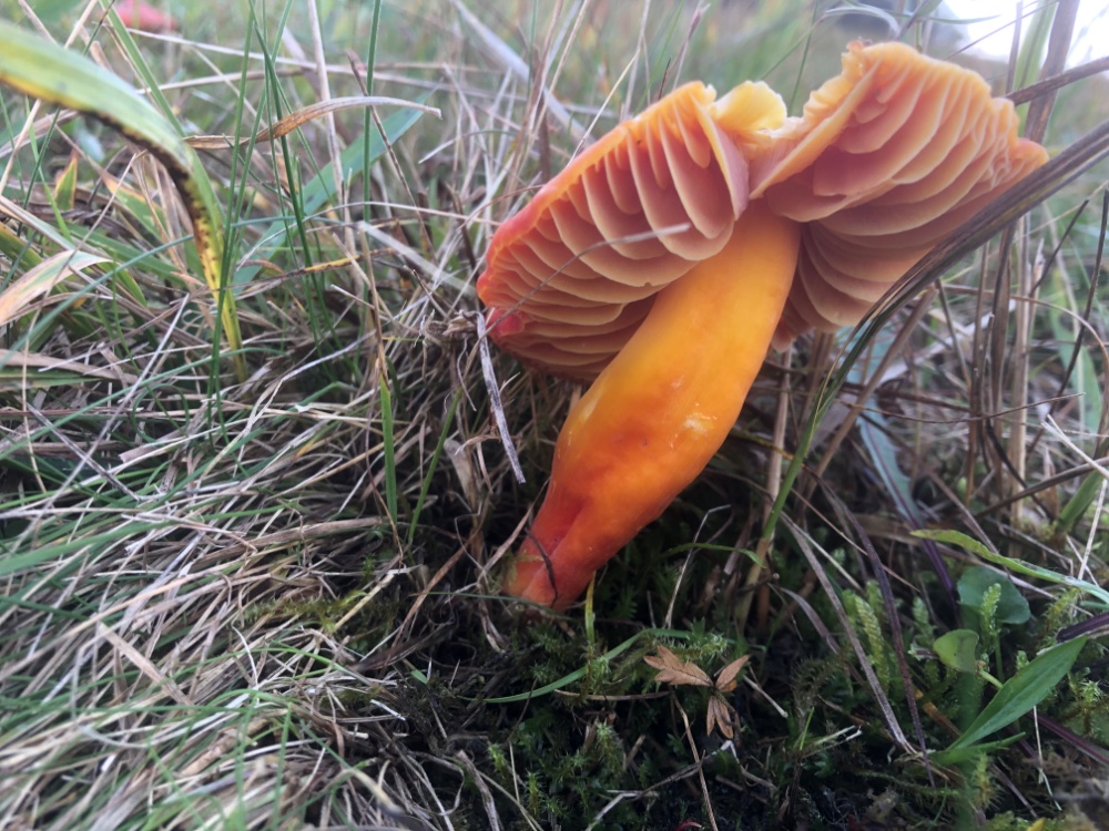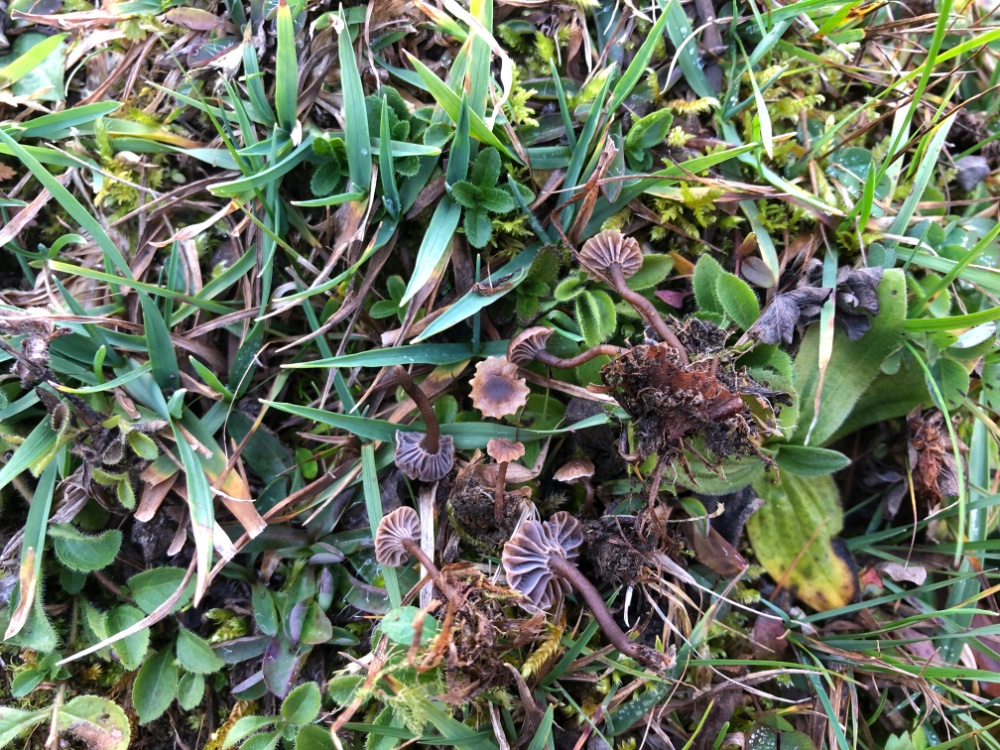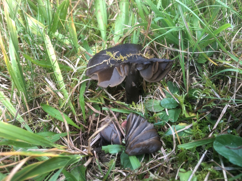 Clavulinopsis fusiformis - in einigen Gebieten gefunden, teilweise in sehr großen Beständen Cuphophyllus sp. - erst dachte ich, wegen der gelben Stielbasis, an flavipes, aber so ganz will mir das nicht passen... hab an mehreren Stellen einer Alm Fruchtkörper mit ähnlich brauner Hutfarbe gefunden. Weiters sind auch die Sporen etwas groß dafür Dermoloma cuneifolium Dermoloma joserandii - auch in gleich drei Gebieten gefunden. In einem in Gesellschaft von D. pseudocuneifolium Entoloma atromadidum - kleine Sporen, runzelige Huthaut und die dunklen Farben sollten die Bestimmung eigentlich recht eindeutig machen Entoloma bloxamii s.str. - in der gleichen Fläche wie E. atromadidum. Recht markant ist der lange weiß bleibende Stiel, der mich auch schon bei den Funden am zweiten mir bekannten Standort aufgefallen ist Entoloma luteobasis - langsam wird mir die Art glaub ich klar... der bloxamii-Habitus, das dunkle Braun mit teils leichtem, stahlblauem Stich, die metallisch glänzende Huthaut und die oft gelbe Stielbasis scheinen schon recht markant... auch in drei Gebieten gefunden Hericium flagellum - an einer abgestorbenen, stehenden Tanne von nur ca 15cm Durchmesser