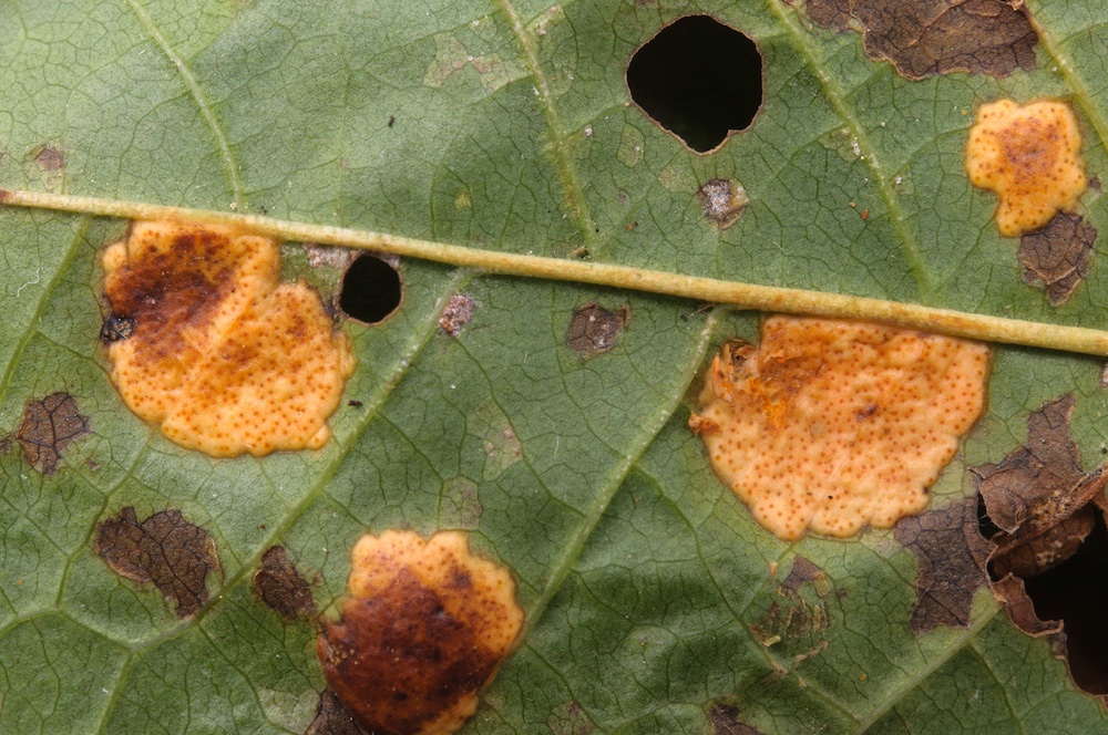 Polystigma fulvum: Lebende Blätter von Prunus padus. .