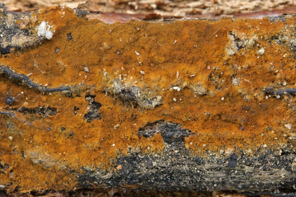Trichoderma auranteffusum: Liegender Carpinus-Ast. .