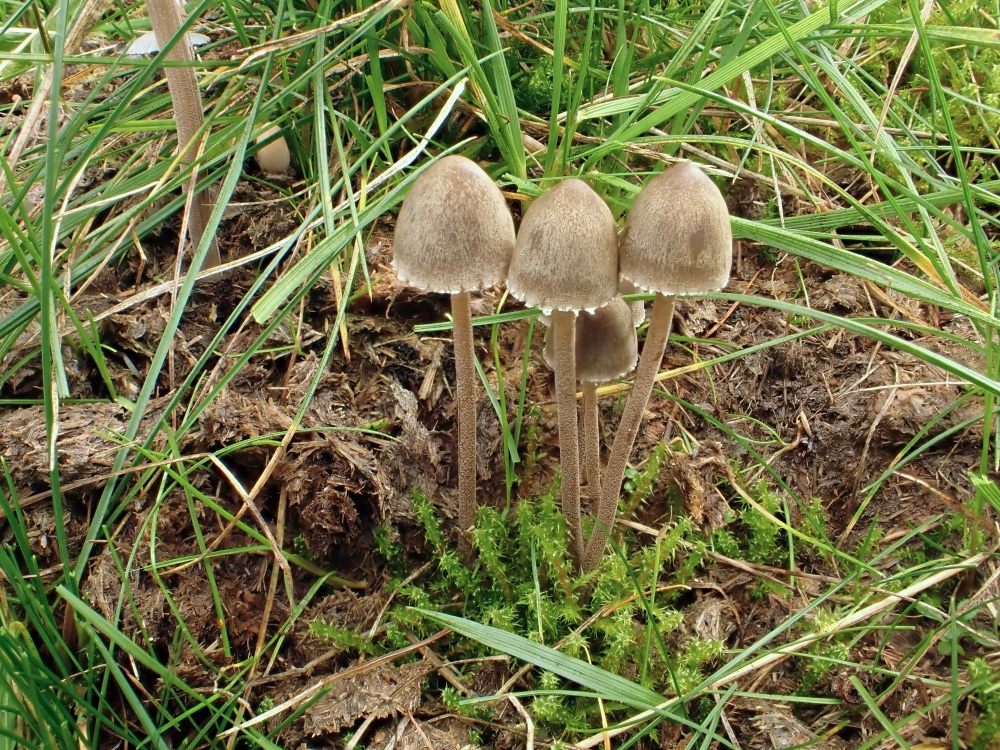 Clitopilopsos hirneola (oder eine nah verwandte Art) extensiv beweidete Wiese mit viel Moos, Waldrand