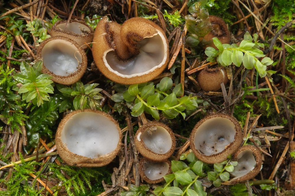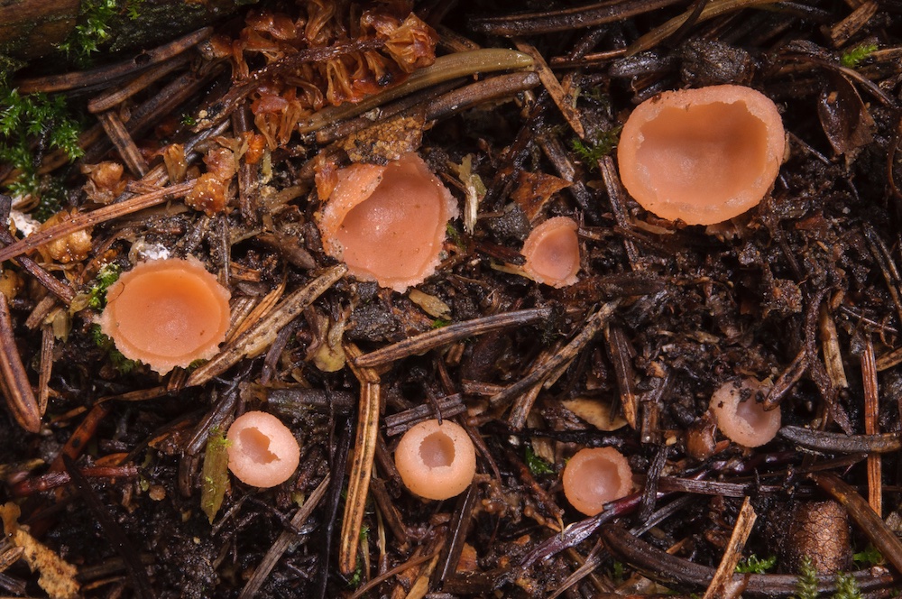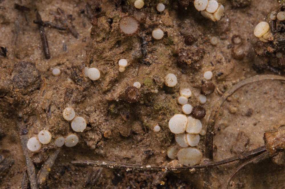 Auf sandiger Erde eines kleinen Überschwemmungsbereiches im montanen Fichtenwald gab es ein Massenvorkommen diverser Pezizales – mindestens ein Dutzend Arten, manche davon in großen Mengen fruktifizierend. Eine Auswahl:
